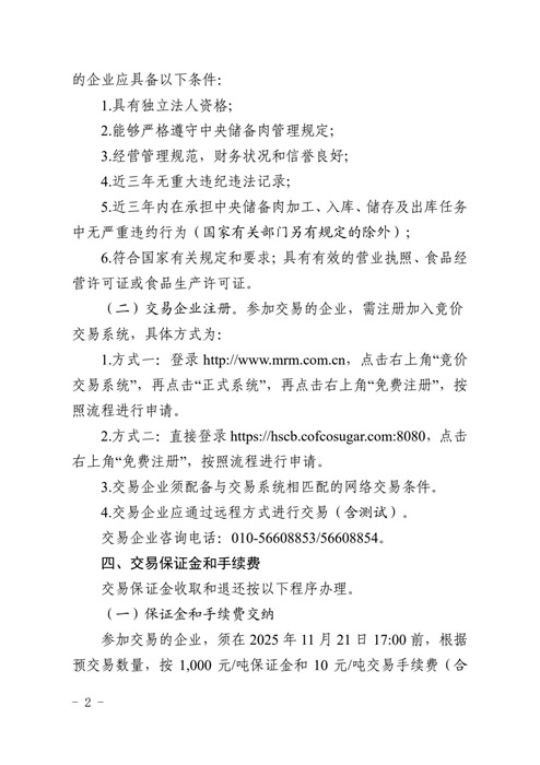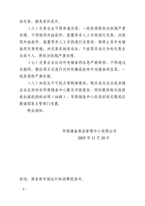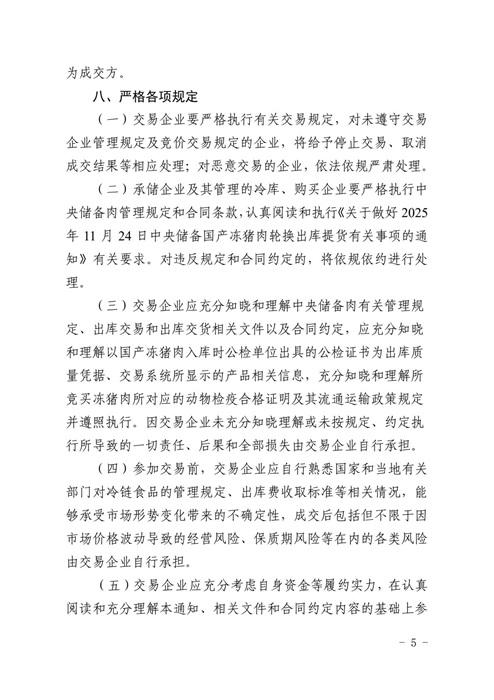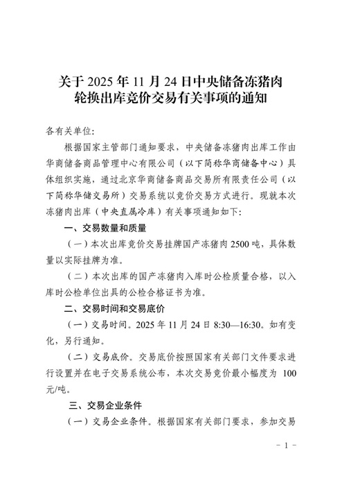 關(guān)于2025年11月24日中央儲(chǔ)備凍豬肉輪換出庫競(jìng)價(jià)交易有關(guān)事項(xiàng)的通知