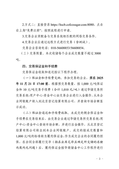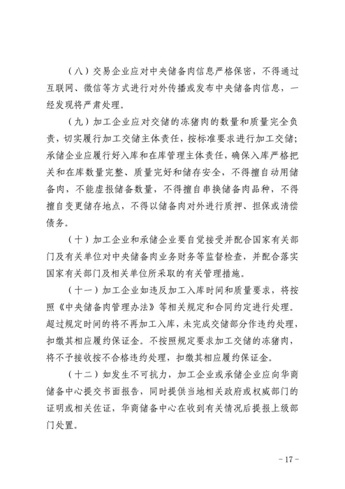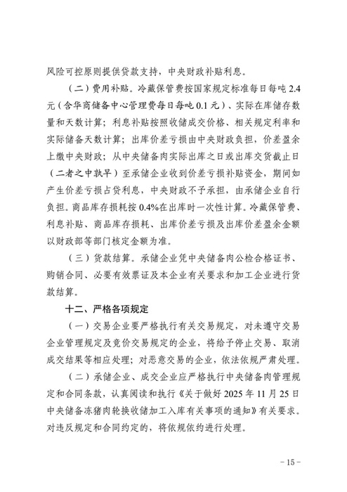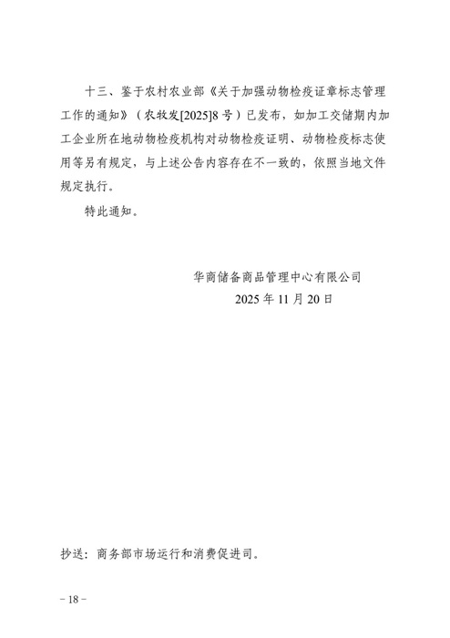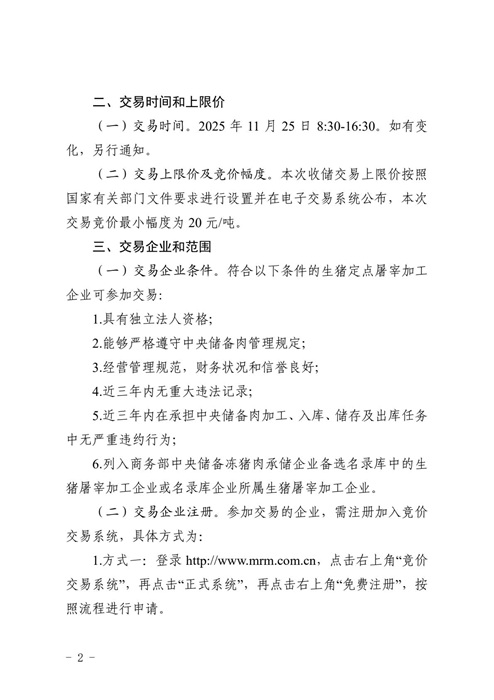 關于2025年11月25日中央儲備凍豬肉輪換收儲競價交易有關事項的通知